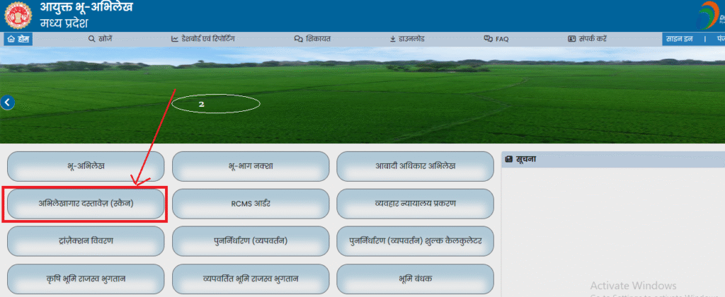 - होम पेज पर “अभिलेखागार दस्तावेज़ (स्कैन)” ऑप्शन पर क्लिक करें।